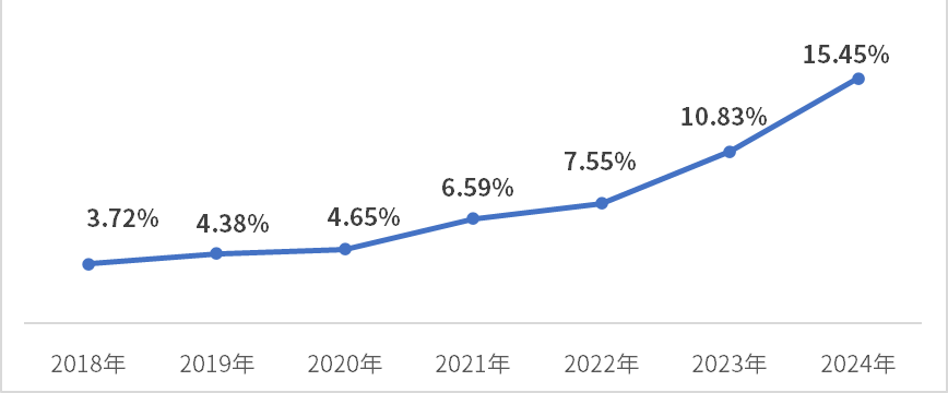 伴随着快运头部玩家的网络效应与规模效应持续增强,快运网络加速整合中小票市场。过去几年,快运市场逐步向网络型企业集中,快运网络市场规模在整体零担市场中的占比,从2018年的3.72%左右,提升到了2024年的15.45%。