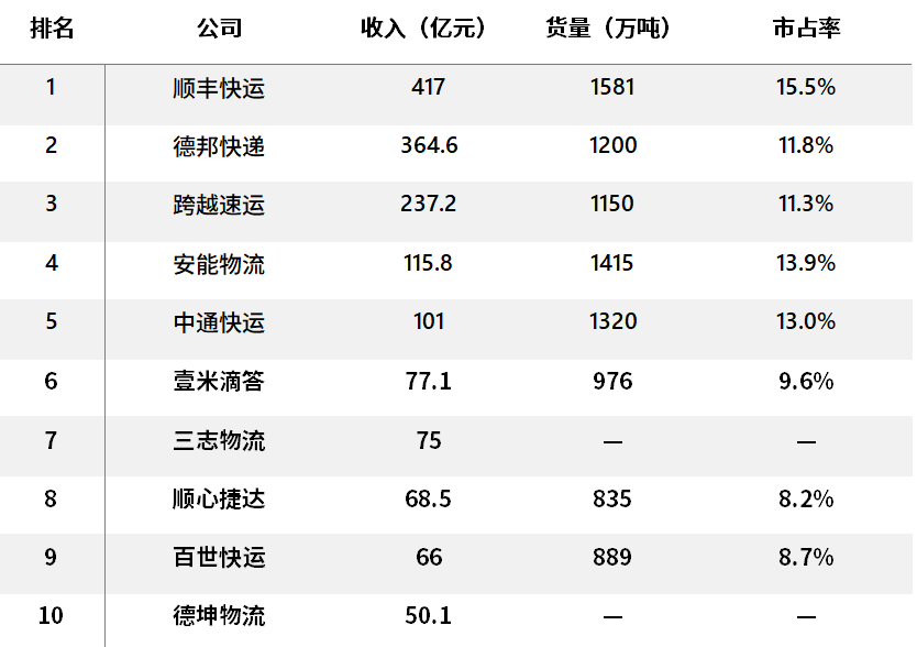 解码零担快运竞争格局:顺丰快运、安能、兴满、融辉、中通、德坤、三志……