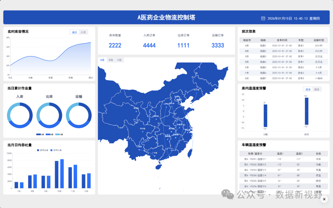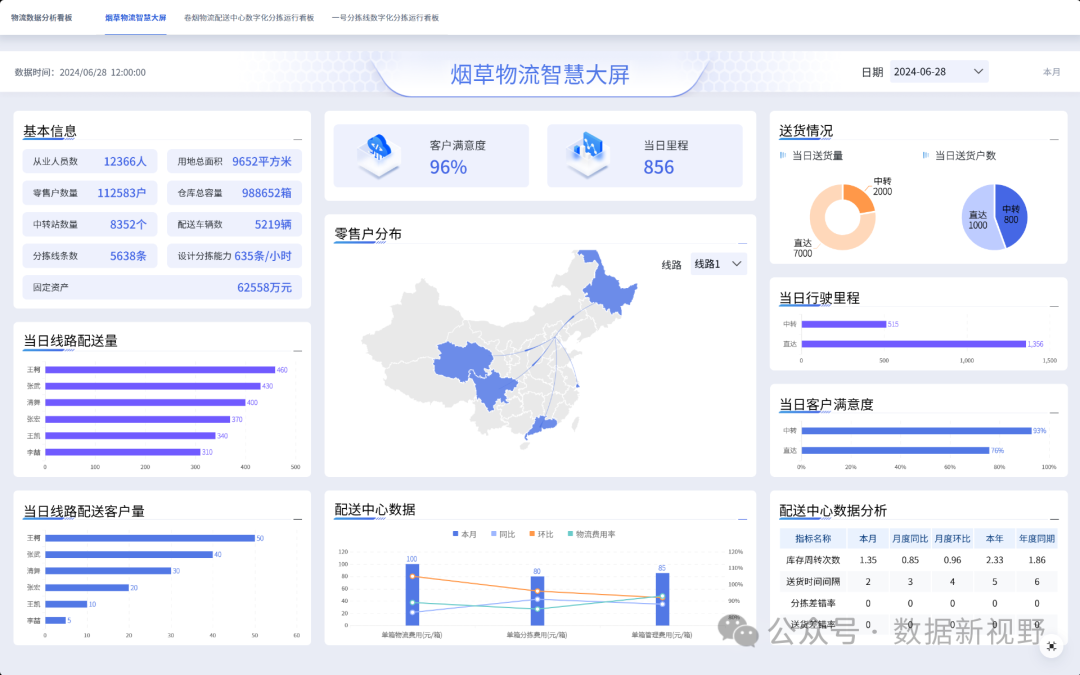 说到这里,我有一份整理好的物流数据分析看板分享给你,可以用于监控和管理产品的分拣、配送和物流过程,包括分拣状态、配送量、客户满意度、行驶里程、仓库和车辆信息等,能帮你提高企业的物流效率和客户服务水平。需要自取:https://s.fanruan.com/weqn6