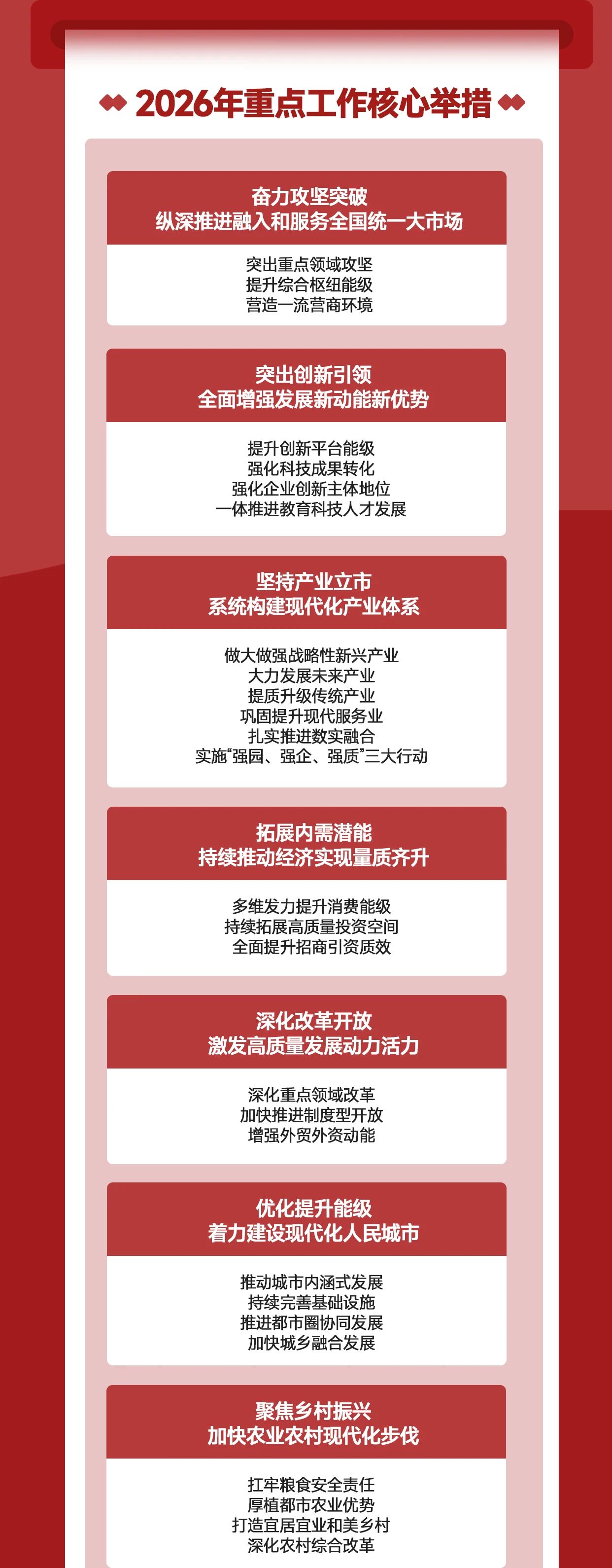 政府工作报告指出,今年是实施“十五五”规划的开局之年,经济社会发展要求高、挑战多、任务重,开局关乎全局。今年经济社会发展的主要预期目标是:地区生产总值增长5%以上,固定资产投资增长5%左右,规上工业增加值增长8.5%左右,社会消费品零售总额增长5.5%左右,一般公共预算收入增长2%,进出口稳中提质,居民收入增长与经济增长同步。