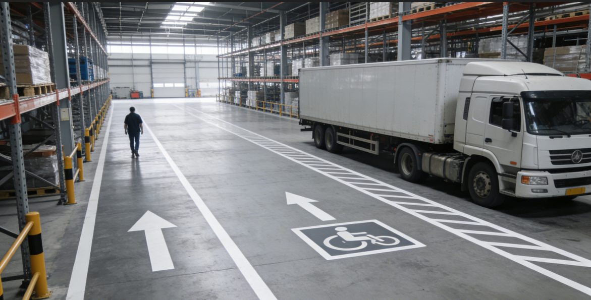 3.通道标准画线:主通道、次通道、安全通道用黄 / 绿 / 黑实线标注,严禁占用;